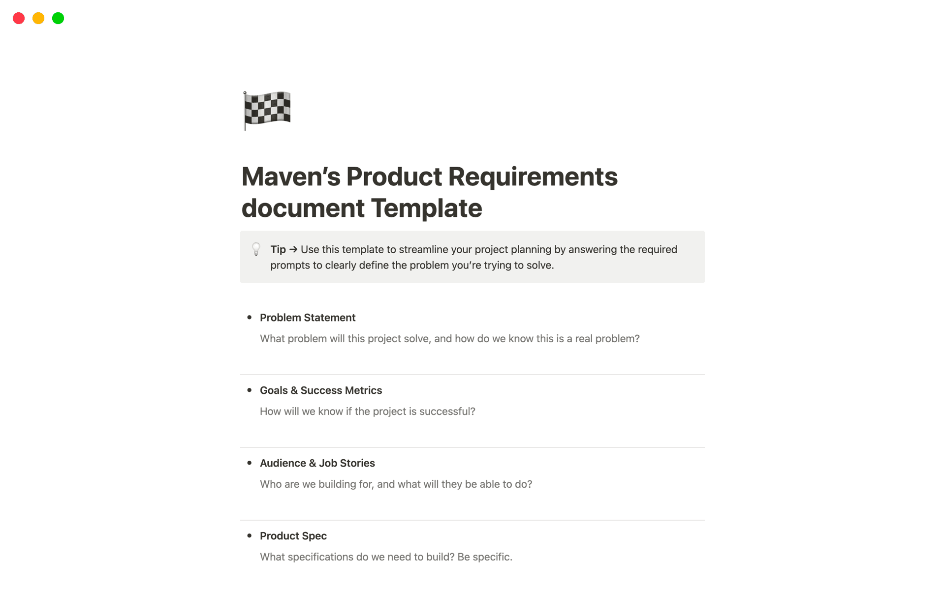 A template preview for